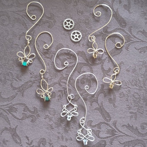 歯車に鉱石、ガラスビジューなどを組み合わせたループタイ、イヤーカフ等の装飾品を作成しています。