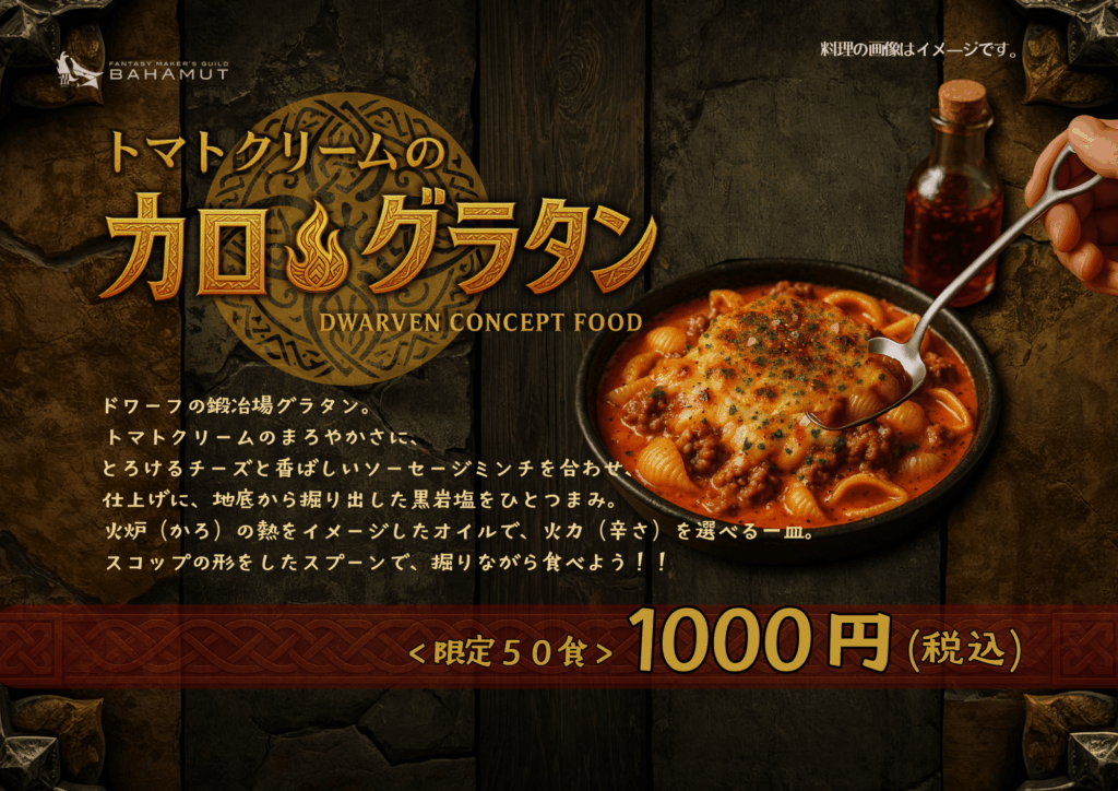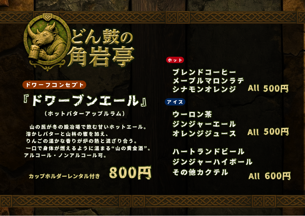 ドワーフをテーマにした酒場のメニューを考案しました。寒空の下で心も体も温まるお食事はいかがですか?