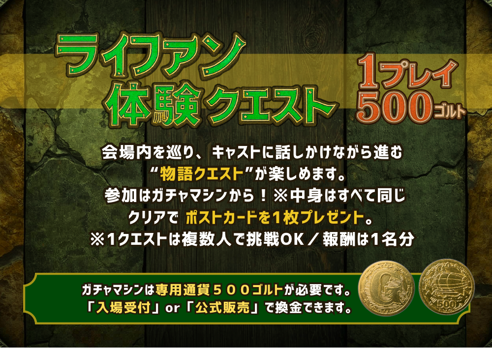 ワンコインで楽しめるファンタジーな体験ゲームです。