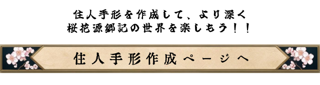 桜花源郷記の舞台である「珠津国」に住む人々が、自身の身分を示すための道具。名前は勿論の事、故郷の藩や職業などいくつかの情報が記載されている手形(カード)となります。 いわば住人手形は自身をキャラクターカード化できるシステムです。