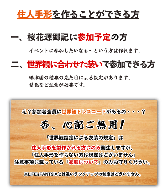 すでに作成されている『住人手形』をご覧いただけるページです。キャラクター作成の参考としてご活用いただいたり、どのような住人がいるのかをご覧いただくだけでもお楽しみいただけます。なお、画像の表示・非表示は専用アプリケーション側で任意に切り替え可能ですので、ご安心ください。