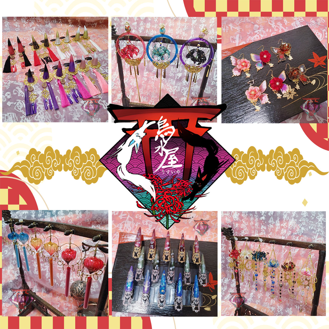 烏水屋は、隠世(かくりよ)という独自の世界観の中で生み出した物語等を元にディップアートをメインとし和風作品の雑貨屋を営んでます。 この先の新たな冒険にちょっとした力が込められた装身具はいかがでしょうか。