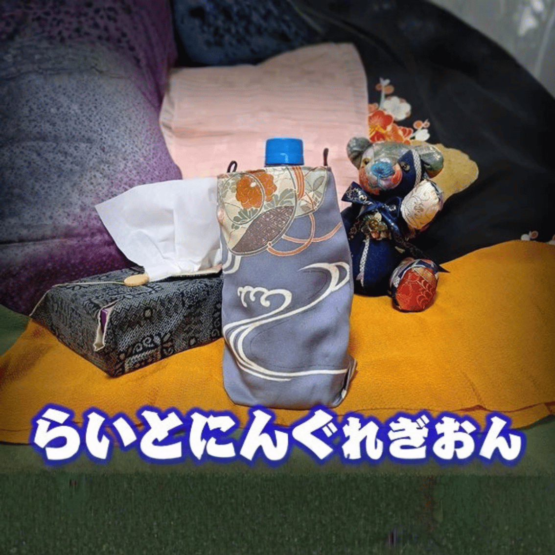 和服をほどいて小物入れやコサッシュなどの雑貨を仕立てております。