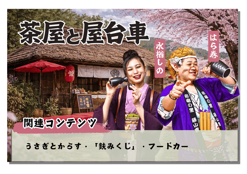 「桜花源郷記」では、会場内を巡りながら、物語の世界観を存分にお楽しみいただけます。ここでは、各場所で行われる演目をご紹介します。
