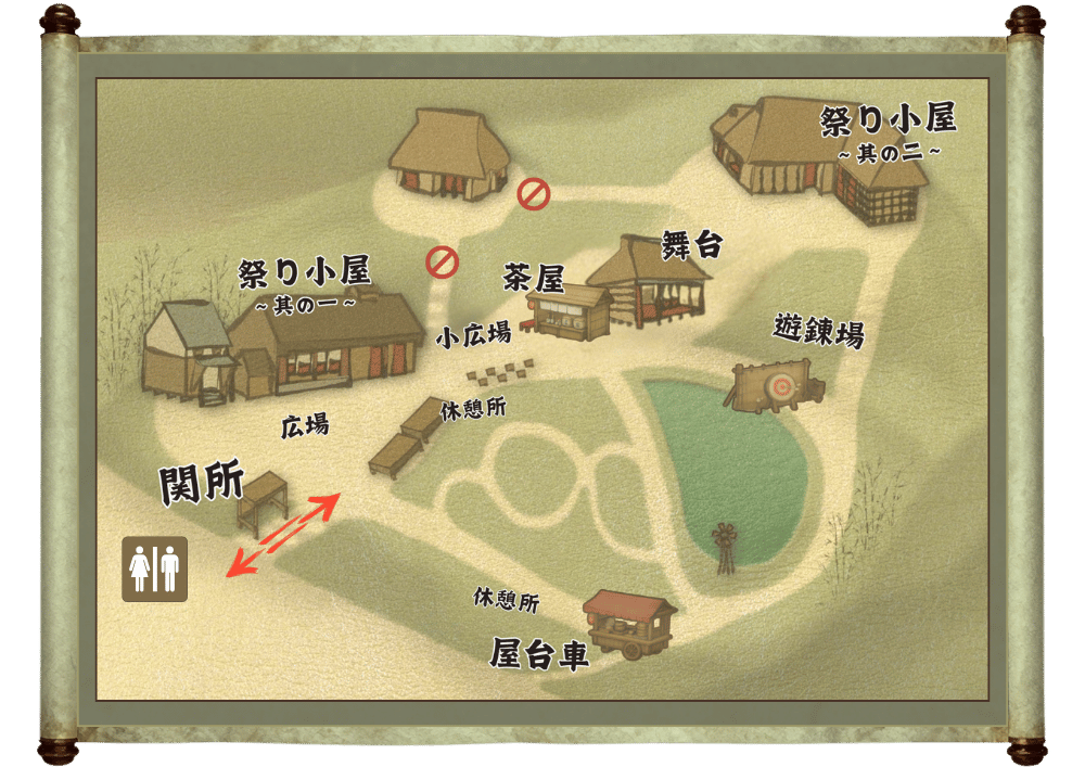 なお、お手洗いは本催事の利用範囲外にございます。外へ出られる際は、必ず関所を通過してからご移動ください。