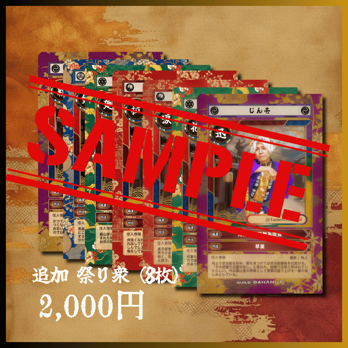 本催しに登場する人物たちの「住人手形」を、無作為にて七枚一組で頒布いたします。