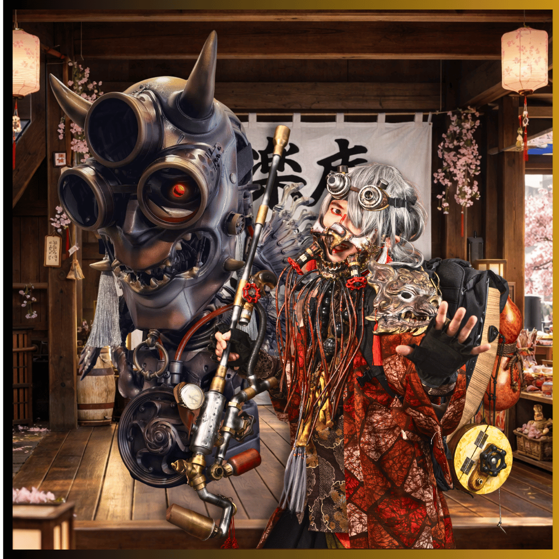 祭り小屋(一)に構える「鬼楽庵(きらくあん)」では、公式冊子や住人手形(キャストブロマイド)をはじめ、桜花源郷記の世界観にちなんだ品々を取り揃えております。