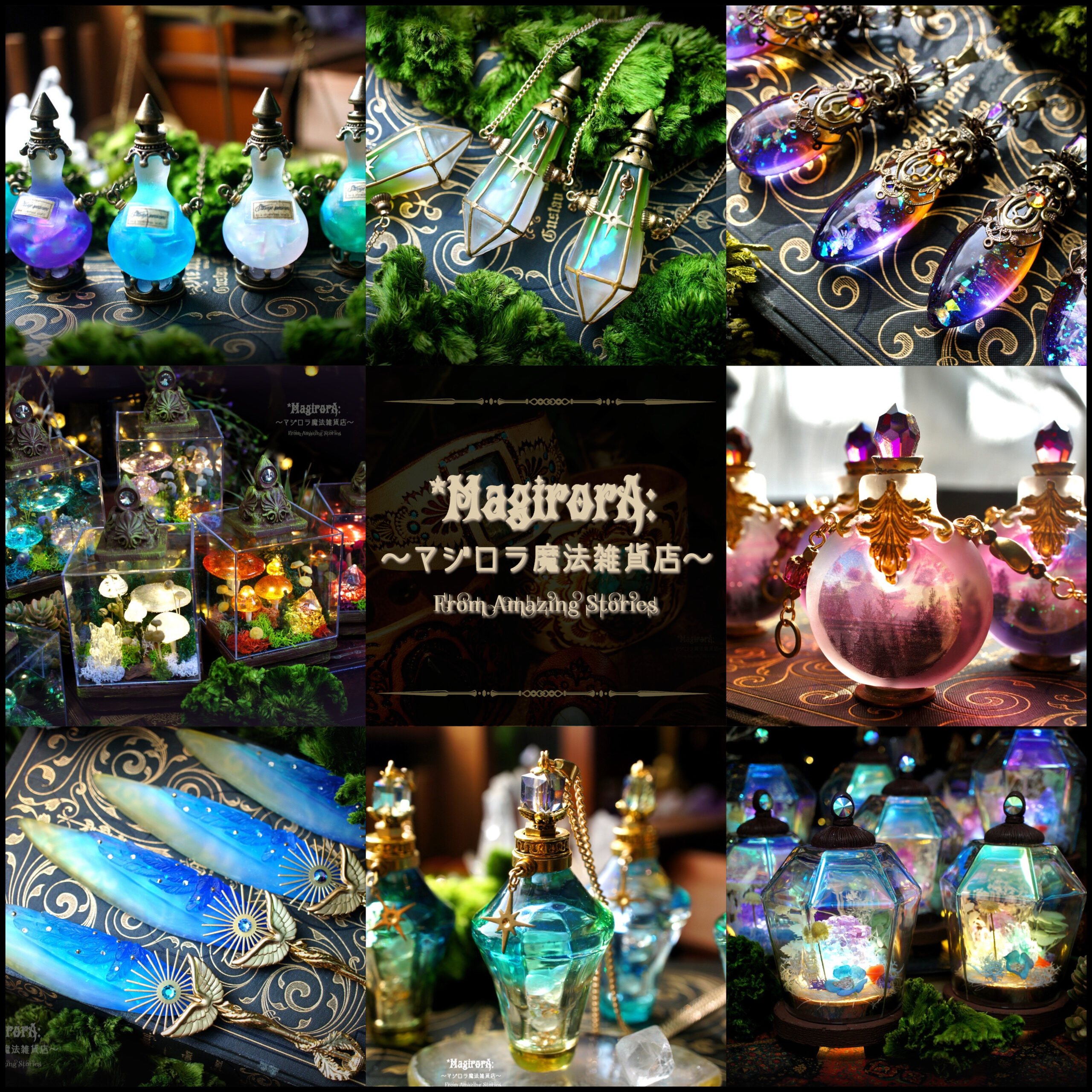 店主マジロラは様々な地方の民族や妖精達の元を訪れては魔鉱石や神秘の生命体を少しずつ採取し、魔法具を精製・加工しています。不思議な大地と生命が作り出す魔法具たちをお楽しみ下さい。