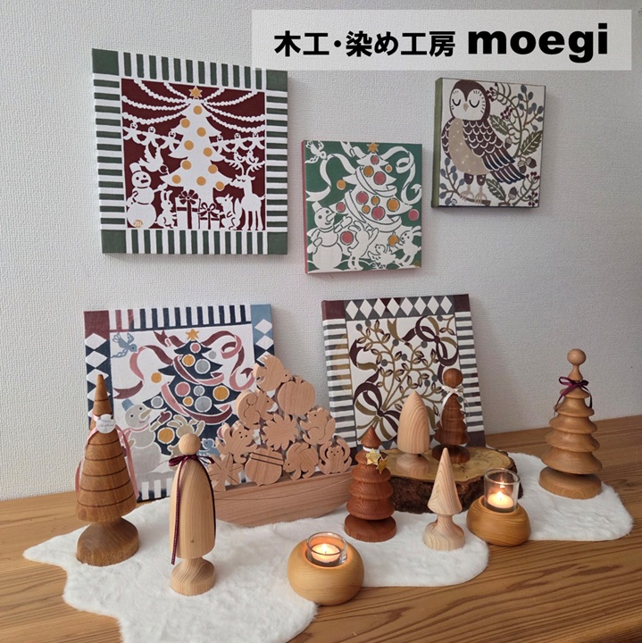 ヒノキやスギの端材に新たな命を吹き込んだ木工作品。土から生まれたベンガラで染めた、人と環境にやさしい染色作品。ユールに相応しいオリジナルデザインです。自然で手作りならではの風合いと手触りが魅力です。誰かへのプレゼントに・・。また、自分の心を温かくするご褒美に・・いかがですか?