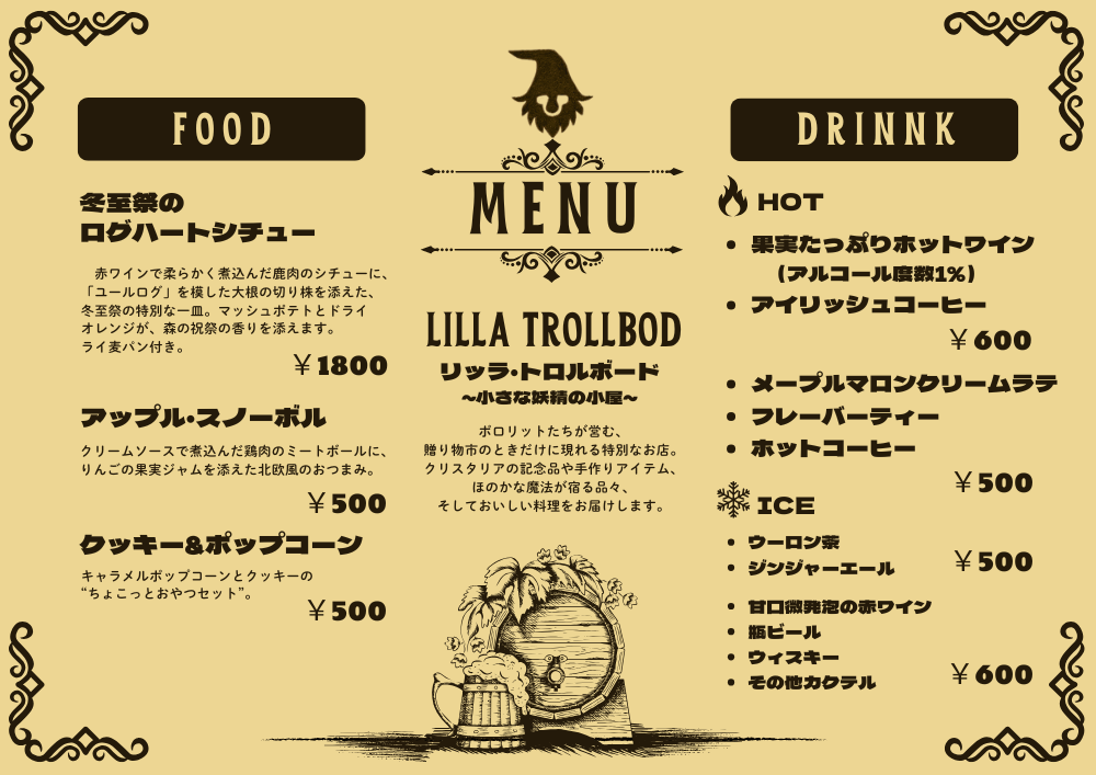 クリスタリアの記念品や手作りアイテム、ほのかな魔法が宿る品々、そしておいしい料理をお届けします。